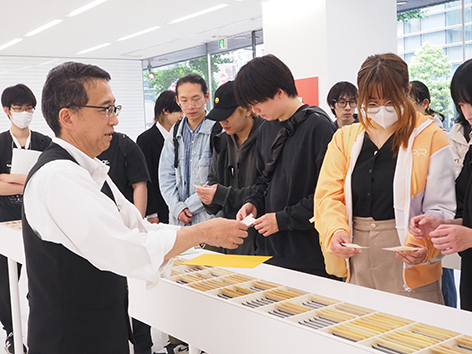 株式会社竹尾との産学連携授業の一環として、専門課程にて紙の素材の講義と紙見本帖の見学を5月12日に実施しました。