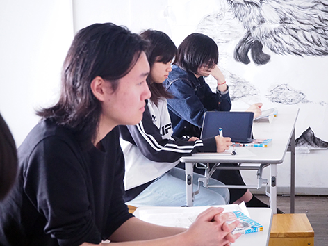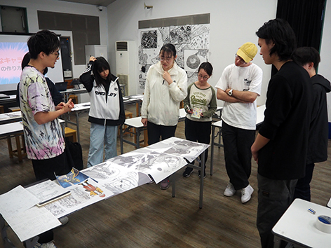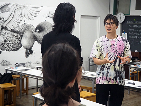 サイコミにて2019年から連載している「TSUYOSHI 誰にも勝てない、アイツには」を連載している丸山先生に漫画を描く気持ちや続ける大切さ、壁を乗り越える大切さとかコツをお話ししてくれます。現在、同漫画は13巻まで続く人気漫画。美大生出身の丸山先生が「魅力あるキャラクターの作り方」講習を実施してくれました。専門生、高校生合同で人気漫画家が描くキャラクターの秘密について解説してくれました。