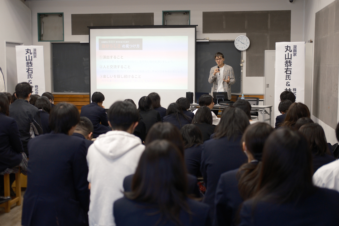 武蔵野学芸専門学校 高等課程にて、サイコミで連載中の人気漫画『TSUYOSHI 誰も勝てない、アイツには』の作者、丸山恭右先生をお招きした特別授業を実施いたしました。