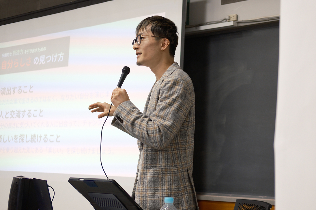 今回の授業では、丸山先生が漫画家を志した経緯から、制作の過程で直面する「壁」への向き合い方まで、ご自身の具体的な経験を交えてお話しいただきました。