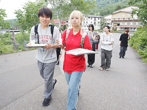 本校では、自らの足で情報を得て、そこから作品を制作すること身につけるために普段から取材課題や写生などの授業を多く取り入れています。今回は2泊3日の写生合宿という形で志賀高原に全学生で合宿しました。志賀高原は国定公園に指定されているため、人の手が入っていない原生林や自然を観察することができます。夜にはホタルの鑑賞会を実施しました。最終日には様々なコースの学生が作品を並べて、合同講評会を実施しました。
