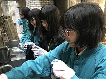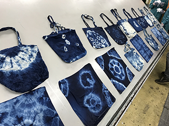 テキスタイル制作では、2年生はろうけつ染、1年生は絞染めを制作しました。この2つの技法は、日本伝統工芸を理解し、染料の美しさや天然の染料の変化に触れる授業でした。