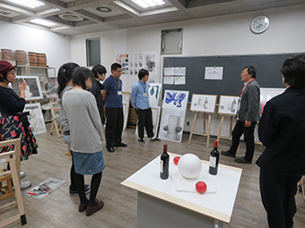 (本校教員が美術大学入試について、詳しく日本式の指導します。最後は講評会を行っています。)