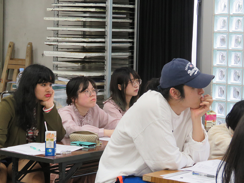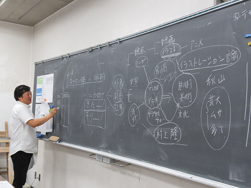今回の授業では、美術史から文字の歴史をひもときながら、言語コミュニケーションについて講義を行いました。