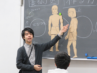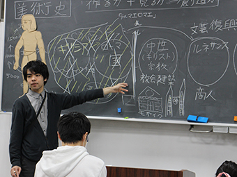 専門課程では、専門学校では珍しい美術史などの学術学科の授業を取り入れています。絵を描くことだけを勉強するのではなく、美術史、解剖学など複合的に美術を学ぶことで、広い知識と専門的な技術の両面から学ぶことができます。 今回は西洋美術史第一回目授業でした。講師は仲間桂太先生です。 ラスコー壁画などの壁画からピカソまでの美術史の概要を講義していただきました。 次回以降は各時代の作品などをクローズアップして授業が展開されます。