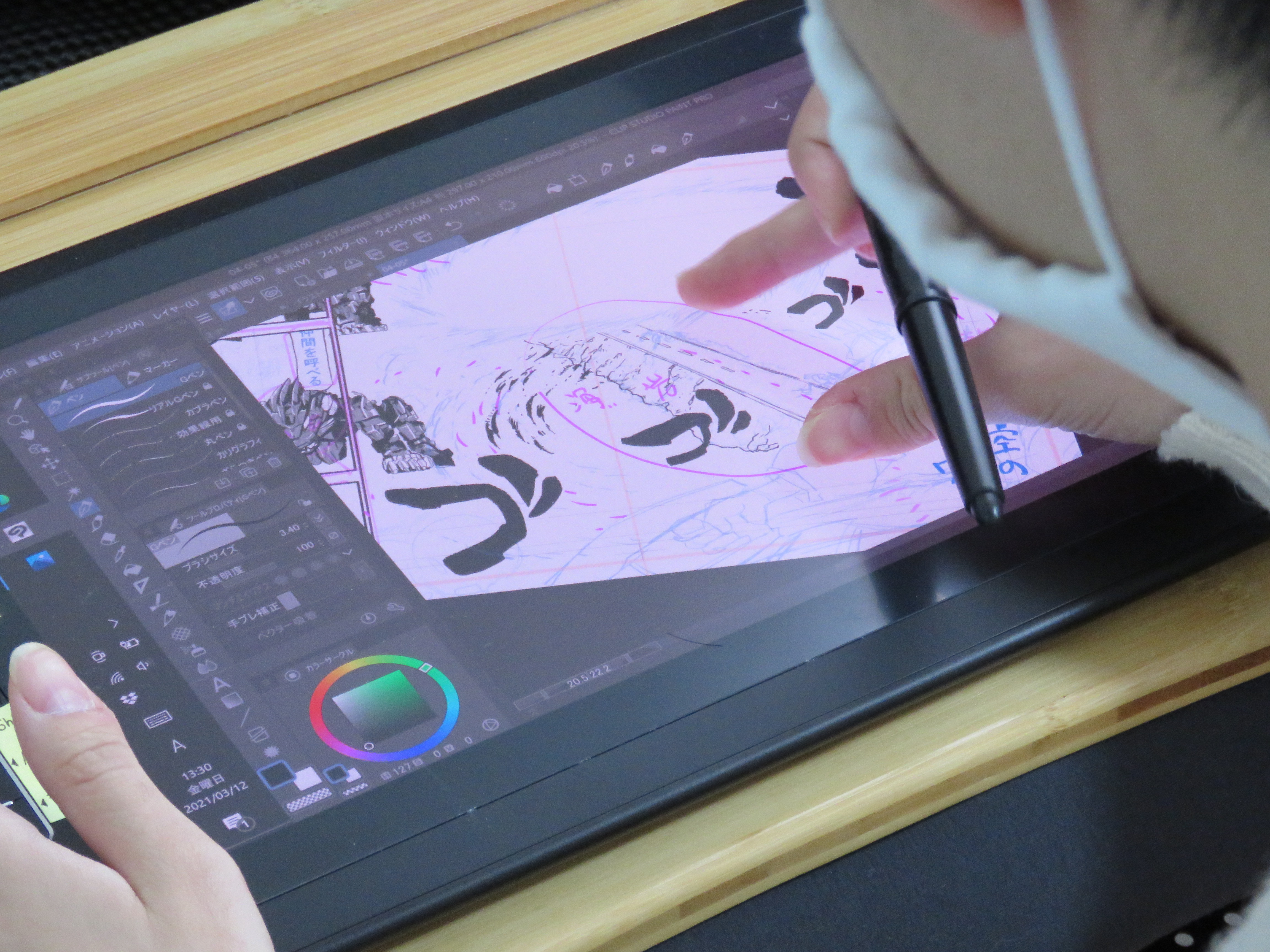 今回の職業体験では漫画家のアシスタントとして必要なスキルである、クリップスタジオの使い方、集中線の描き方、背景の描き方などをデモンストレーションを交えて体験させていただきました。