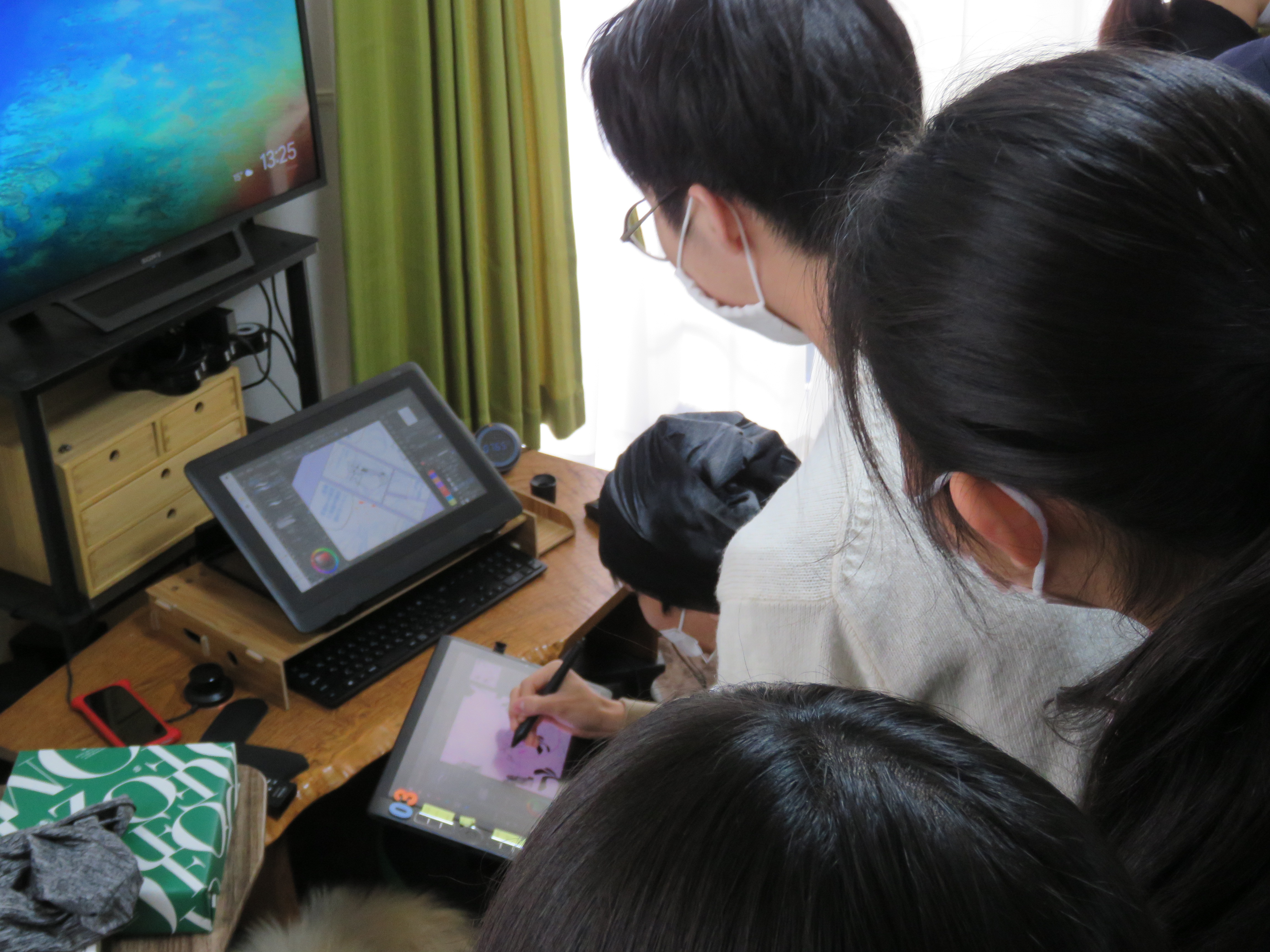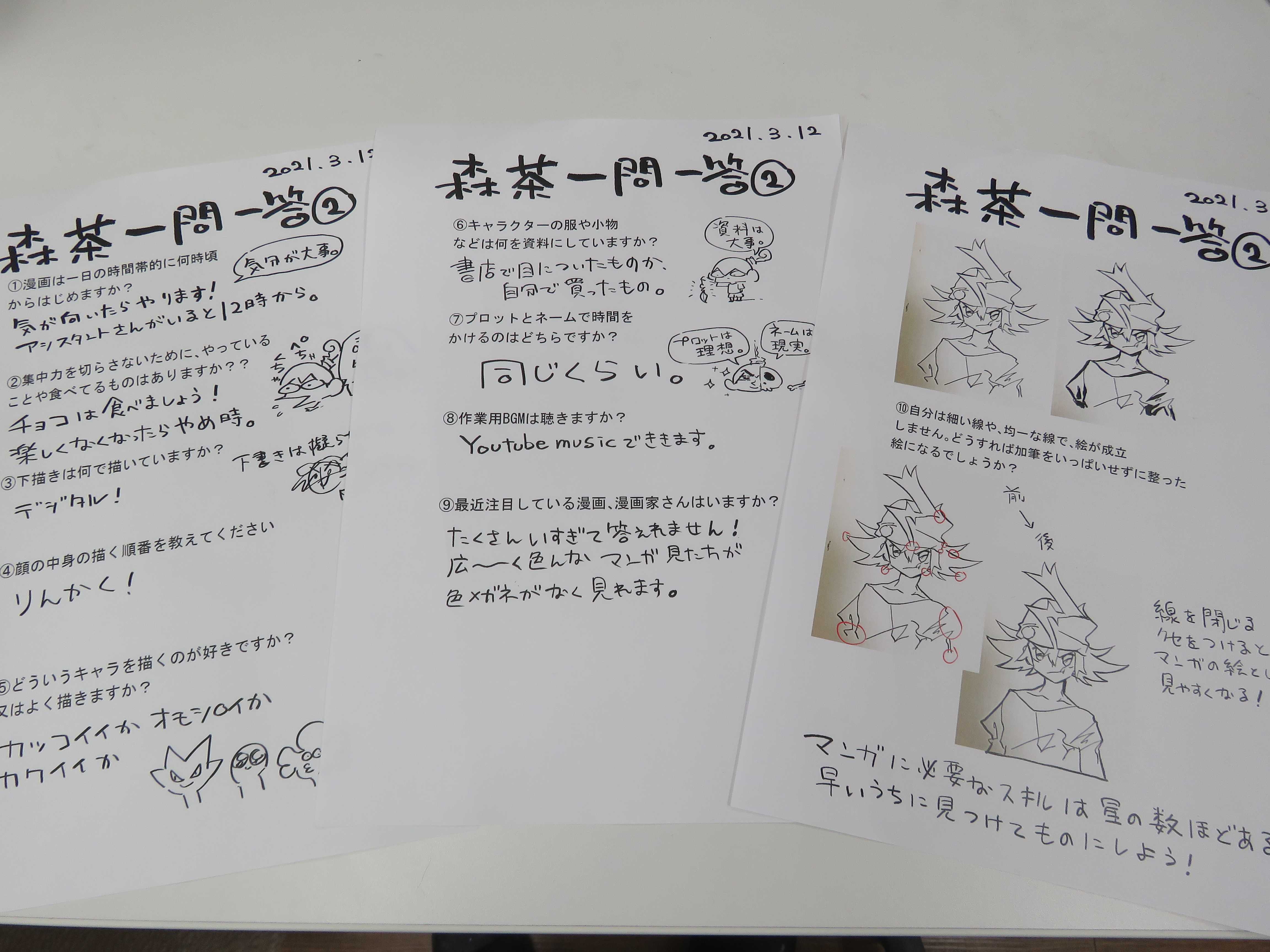 人気漫画家森茶先生により3月12日イラスト、漫画コースの生徒対象に特別にアトリエにご招待していただきアシスタントの職業体験を実施してくださりました。