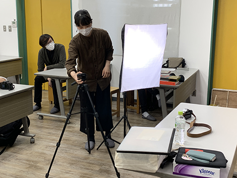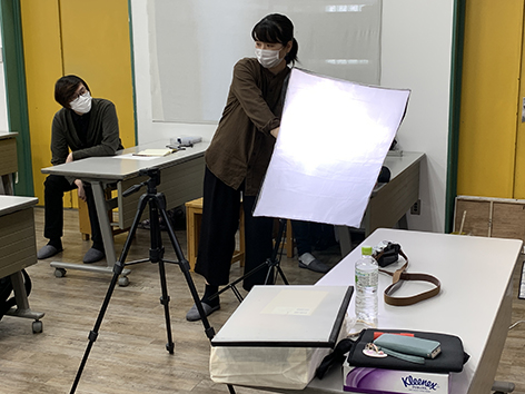 また、一眼カメラを持っていない学生のための撮影テクニックやライティング、写真の保存形式、解像度、トリミング方法、写真編集ソフト、印刷について教わりました。これから制作する作品集やポートフォリオに対応するための本校ならではの特別授業です。