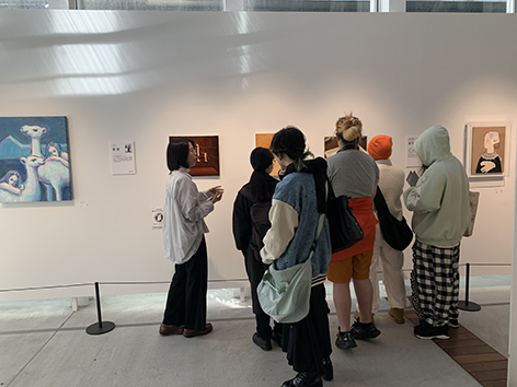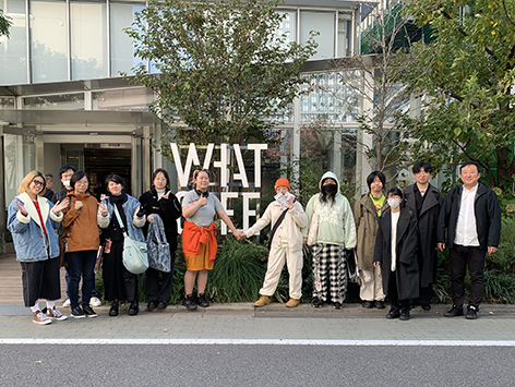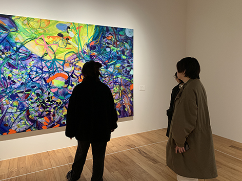 PIGMENT TOKYOで画材の勉強をした後は、寺田倉庫が運営するカフェギャラリーWHAT CAFFでの展示閲覧、WHAT MUSEUMの展示見学などを解説付きで見せてもらいました。