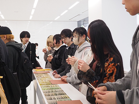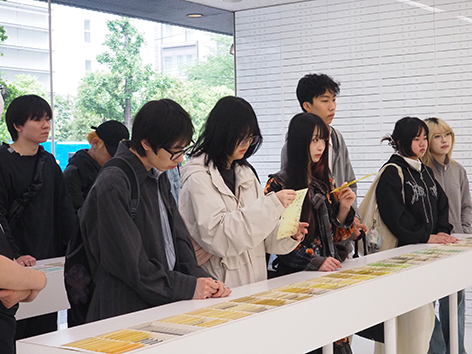 株式会社竹尾との産学連携授業の一環として、専門課程にて紙の素材の講義と紙見本帖の見学を5月12日に実施しました。