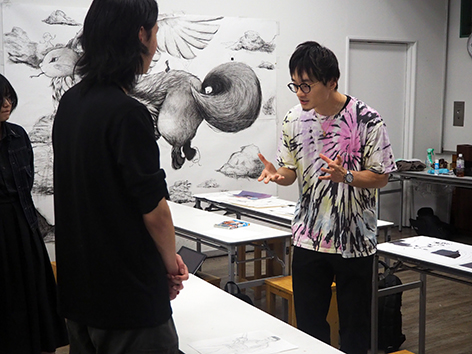 サイコミにて2019年から連載している「TSUYOSHI 誰にも勝てない、アイツには」を連載している丸山先生に漫画を描く気持ちや続ける大切さ、壁を乗り越える大切さとかコツをお話ししてくれます。現在、同漫画は13巻まで続く人気漫画。美大生出身の丸山先生が「魅力あるキャラクターの作り方」講習を実施してくれました。専門生、高校生合同で人気漫画家が描くキャラクターの秘密について解説してくれました。