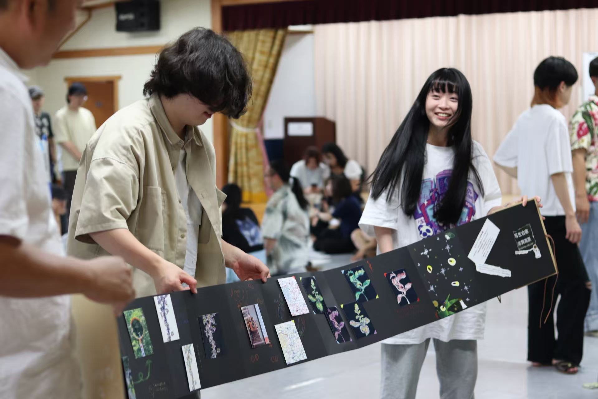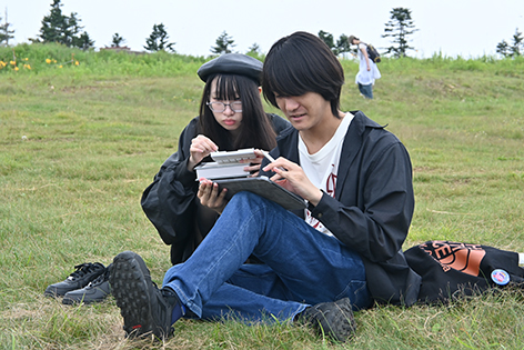 本校では、自らの足で情報を得て、そこから作品を制作すること身につけるために普段から取材課題や写生などの授業を多く取り入れています。今回は2泊3日の写生合宿という形で志賀高原に全学生で合宿しました。志賀高原は国定公園に指定されているため、人の手が入っていない原生林や自然を観察することができます。夜にはホタルの鑑賞会を実施しました。最終日には様々なコースの学生が作品を並べて、合同講評会を実施しました。