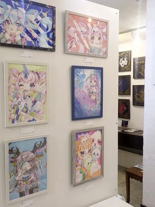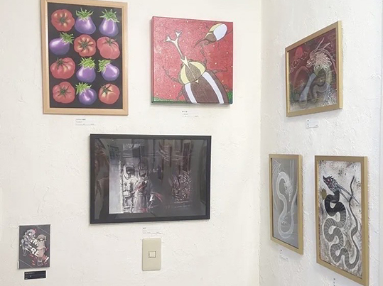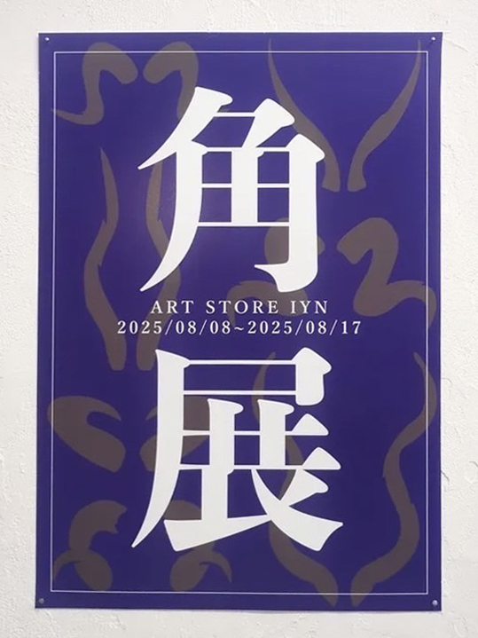 2025年8月8日〜8月17日にGallery IYN ART STOREIYN主催の「角展」に作品を出展しました。卒業生のおしるこ。はフリーのイラストレーターとして活動しています。デジタルでの作品を中心にとしたアーティストで、web上で作品の依頼受注、作品販売を行なっている。今後、本校が主催する展示にも出品してもらう予定です。
