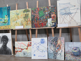 作品展示も100点以上の作品が並び、学生たちも興味深々でした。