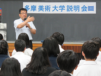 本校に多摩美術大学入試センター入試広報課長に来校して頂き、美大進学説明会を開催して頂きました。