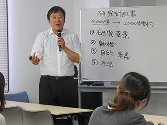 説明会では大学院入試で問われる入試内容や注意点、また、事前準備、面接、研究計画書、ポートフォリオの作成方法などの説明を行いました。実は、大学院入試は留学生も日本人も概要は同じです。留学生だから特別ということではなく、日本人と変わらない準備が大切です。