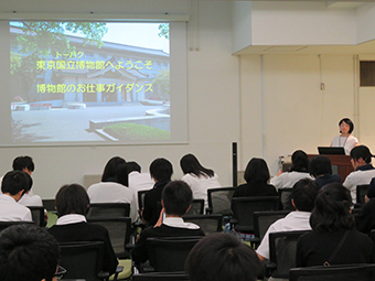東京国立博物館の見学では、学芸員による解説と展示の案内があります。 普段目にしない日本美術の歴史や文化、遺産などをまじかに見ることができて、生徒達はとても満足そうでした。特に国宝級の刀や柄などの装飾品は日本の伝統工芸が集結した展示に感動でした。 引率した教員が一番楽しそうでしたね。