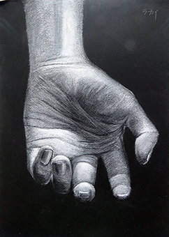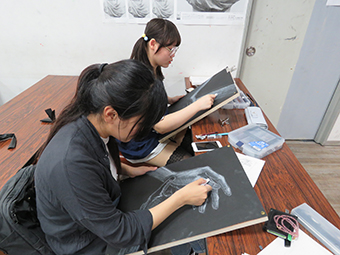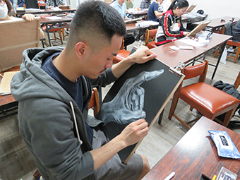 本学では、日本文化・芸術の学習のみならず、西洋の絵画技法の習得も行います。グリザイユ技法は西洋で多く用いられたデッサン技法で、この描き方を学ぶことで光や調子に対する意識向上が望めます。学生達も破締めての技法に悪戦苦闘をしていましたが、出来上がった作品に満足していた学生も多かったようです。