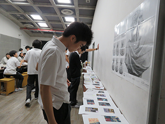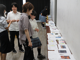 この企画は、前期の頑張りをねぎらうだけではなく、9月に実施する展覧会のDM作品の発表会でもありました。学生が作った作品を学生同士が投票して、優秀作品を決めます。今年も素晴らしい作品が多く並びました。