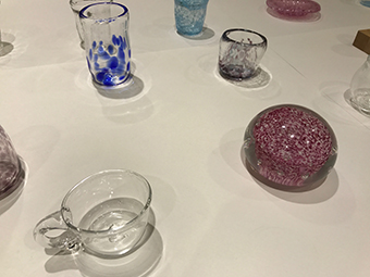 授業の作品だけではなく、東京芸術大学と社会連携の一環として実施している「芸大サマーキャンプ」での制作作品のガラス、版画、七宝、木工作品を展示しています。