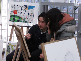 (本校教員が美術大学入試について、詳しく解説します。また、持参作品のアドバイスも行っています。)