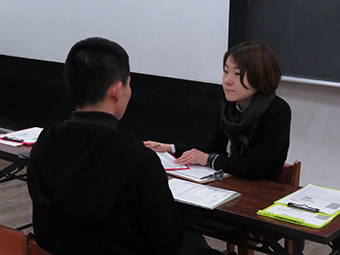 (本校学生に授業の様子や受験対策について話してみましょう。)