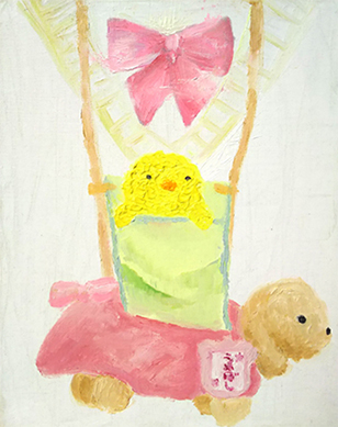 鳥巣さんは日頃は、油絵作品を制作する学生です。しかし、自由に自己表現をする作品を制作するときは、自分のアート作品と作詞作曲した音楽を組み合わせて表現をしています。