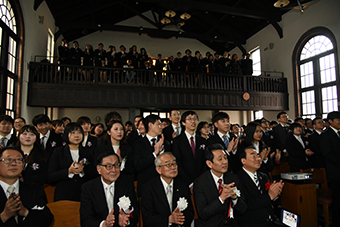 最後に、卒業・修了の皆さんが、それぞれの目的に合った場所を見つけ、自らの学習や研究の成果を生かして、生き生きとご活躍されることを願い、またお会いできることを期待し、私のお祝いのことばとさせていただきます。