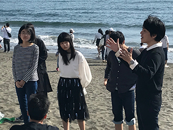 その後、浜辺で食事会をしました。食事会ではコース長の就任式、離任式を行いました。