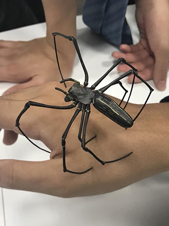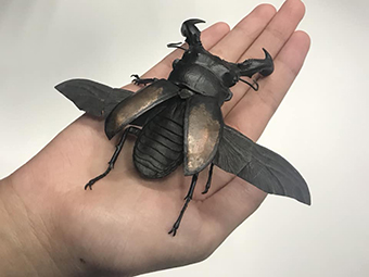 今回は、満田先生に作品を持参していただき、作品に触れる機会をいただきました。関節が本物通りに動く様子に学生達は驚愕してました。また、細部まで精巧に作られた金属製の作品の中に、日本の伝統芸術である工芸の魅力を再発見したようです。満田先生ありがとうございました。