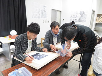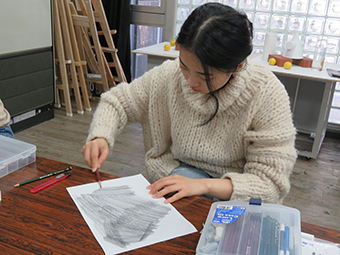 第一回目の授業では、写真を鉛筆で模写してリアルな描写を体験します。