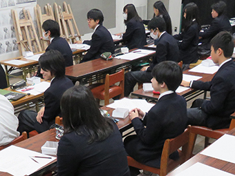 今日は美術で使用する鉛筆の削り方、鉛筆の種類、紙の扱い方、描く基本姿勢など絵を描くために必要な注意点の説明をしました。これからどんどん上達するための最初の大切な心構えと技術です。