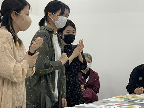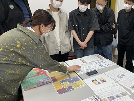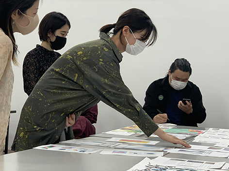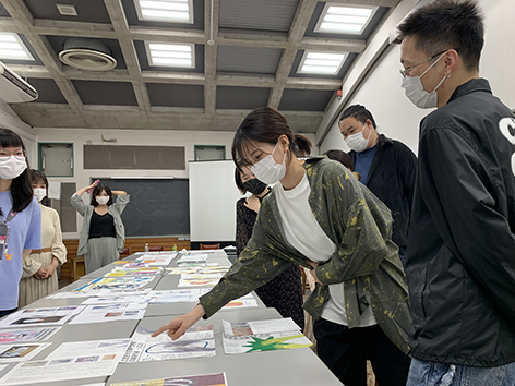 この授業はポートフォリオを制作に限らず、絵本制作にも必要なデザインの技術です。この技術を学ぶことで情報を整理し、視覚的に解りやすい紙面を制作することが出来ます。今後は完成した作品を講評するための講評会にも参加してもらい、1年を通して学生の成長を見守ってもらいます。