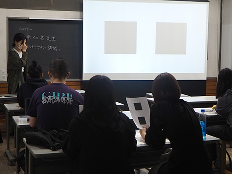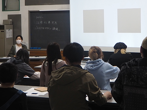 プロのエデュトリアルデザイナーとして活躍する江南仁美先生によるレイアウト特別授業を実施しました。特別授業では目のしくみを考慮した「見る」ことに対する意識、文字フォントについての解説、文字組方法、レイアウトについて講義しました。