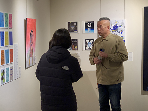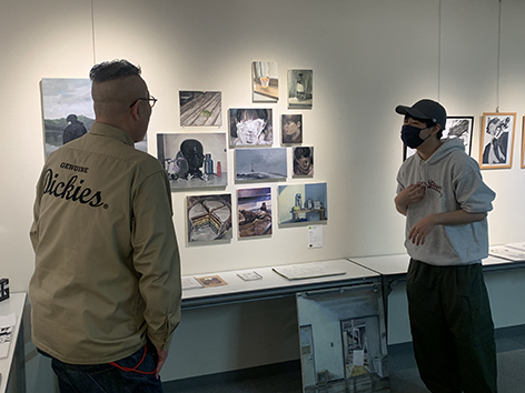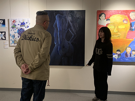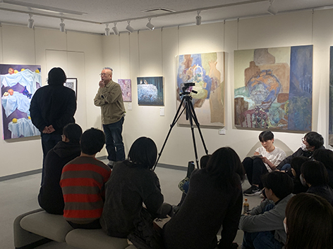 2024年2月21日にアーティストのO JUN氏に来校していただき、佐藤美術館の立島惠氏と共に油絵・日本画の学生と生徒の作品を講評していただきました。これから社会に出てアーティストを目指す第一歩を踏み出す卒業展示が学生たちの大きな励みになり、また道を照らす光となると考えています。