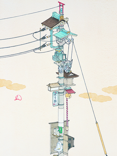 子の字引留行形柱 2010 紙にペン、水彩 35 x 24 cm 撮影:宮島径