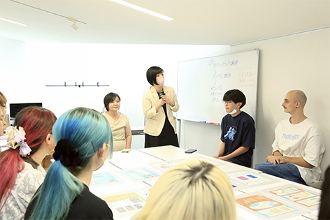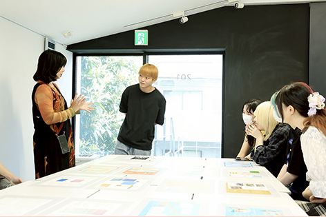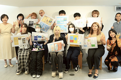 本校のグラフィックデザインコースの学生たちが視覚障がいの方々を支えるための声がけリーフレットの制作に取り組みました。今回の産学連携は視覚障がい美容協会の佐藤優子理事からご提案で始まったプロジェクトです。