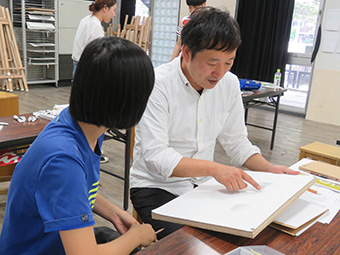 漫画制作体験授業では特別講師の山科ティナさんが来校して指導をしてくれます。