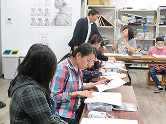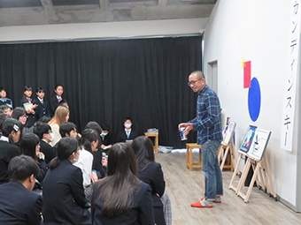 栗原先生は、高等課程、専門課程の学生に一人、一人丁寧に講評をしてくださり、4時間半に及ぶ熱弁に学生たちは、すごく良い勉強をした1日でした。もっと話が聞きたいと名残惜そうな学生も出てしまうなど、本当に美術を楽しめた高専大連携授業でした。
