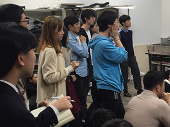 最後は栗原先生を囲み、記念撮影をして、先生に記念の学生全員がお礼を書いた色紙を渡して、最後は大いに盛り上がりました。