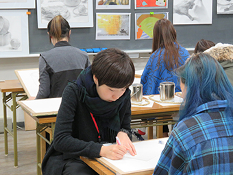 私たちが入学試験を受験する皆さんに期待しているのは、コミュニケーション能力があり、自ら調べて、発見出来る力を持っているか、興味のあることを自主的に学び、また学ぼうとする強い意志をもっているかということです。もちろん基礎となる言語力は必要であり、実習のためのデッサン力などの基本的なスキルも大切です。言語と芸術文化を総合的に問われる入学試験への、皆さんの意欲的な挑戦を心待ちにしています。