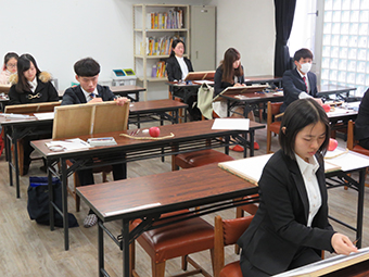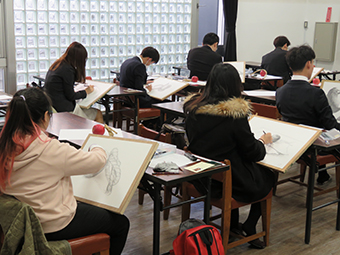 私たちが入学試験を受験する皆さんに期待しているのは、コミュニケーション能力があり、自ら調べて、発見出来る力を持っているか、興味のあることを自主的に学び、また学ぼうとする強い意志をもっているかということです。もちろん基礎となる言語力は必要であり、実習のためのデッサン力などの基本的なスキルも大切です。言語と芸術文化を総合的に問われる入学試験への、皆さんの意欲的な挑戦を心待ちにしています。
