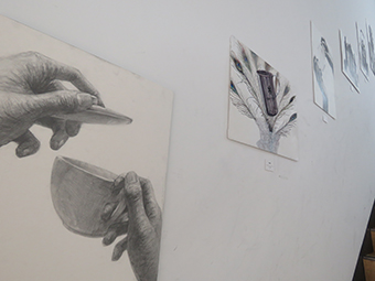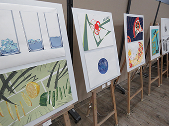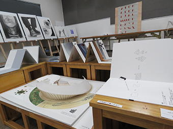 デッサンをはじめとして、油彩、平面構成、インスタレーション、プレゼンテーション、作品ファイルなど数多くのジャンルの作品が展示されています。